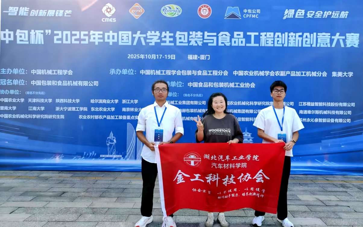 本网讯(文/张若琳、顿亚鹏)10月19日,“中包杯”2025年中国大学生包装与食品工程创新创意大赛全国总决赛暨颁奖大会在福建厦门举行。我校汽车材料学院“波风水门[青年]”团队、“鱼跃精工”团队的作品,从全国400余项参赛作品中突围,分获国家级二等奖、三等奖。