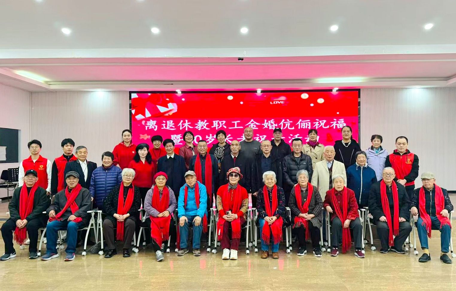 校工会主席陈海峰代表学校,向金婚伉俪、老寿星及全体离退休老同志致以问候与敬意。他表示,老同志们是学校建设的参与者、发展的见证者,以无私奉献和辛勤付出为学校高质量发展奠定基石,是当之无愧的“功臣”。学校将持续为离退休教职工提供关爱、搭建平台,支持老同志们建言献策、发挥余热,与大家共享发展成果,共谱学校发展新华章。