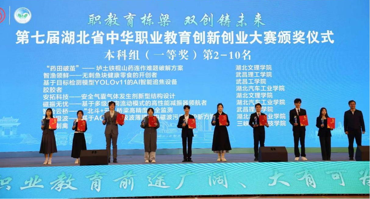 本网讯(文/图 程俊)11月1日,第七届湖北省中华职业教育创新创业大赛在湖北工业职业技术学院收官。全省40个应用型本科高校项目入围决赛,湖北省副省长张文彤、十堰市委书记黄剑雄等领导出席颁奖仪式并为获奖者颁奖。