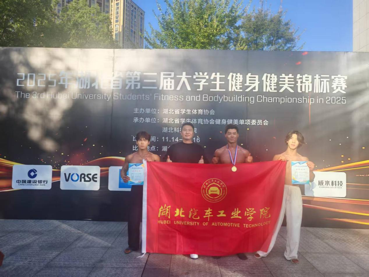 11月14日至16日,第三届湖北省大学生健身健美锦标赛在湖北科技学院成功举办。来自省内43所高校的300余名运动员齐聚赛场。在我校周胜老师的专业指导下,健身健美队展开了为期两个多月的系统备战,从动作规范性到舞台表现力均实现全面提升。比赛中,三名参赛队员全部获奖,分别夺得本科普通组男子健身模特B组第一名、男子健体D组第三名、男子健美65kg级别第四名和第五名,团体总分位居本科普通组第六名,首次出征便实现历史性突破。