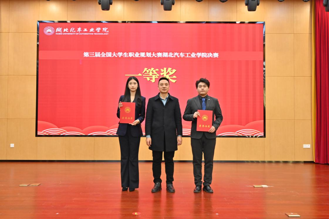 本网讯(文/金涛)11月21日下午,以“筑梦青春志在四方,规划启航职引未来”为主题的第三届全国大学生职业规划大赛湖北汽车工业学院决赛,在产教大楼四楼报告厅和5101报告厅圆满落幕。校党委常委,党政办公室主任王文山,教育部就业创业指导委员会委员高泽金出席,武汉诺禾创联科技有限公司总经理郑东琴、武汉格⽊教育科技有限公司资深就业指导规划师蔡世浩,学工部、教务处、招生与就业处负责人,各二级学院党委书记、副书记及550余名师生代表观摩助阵。