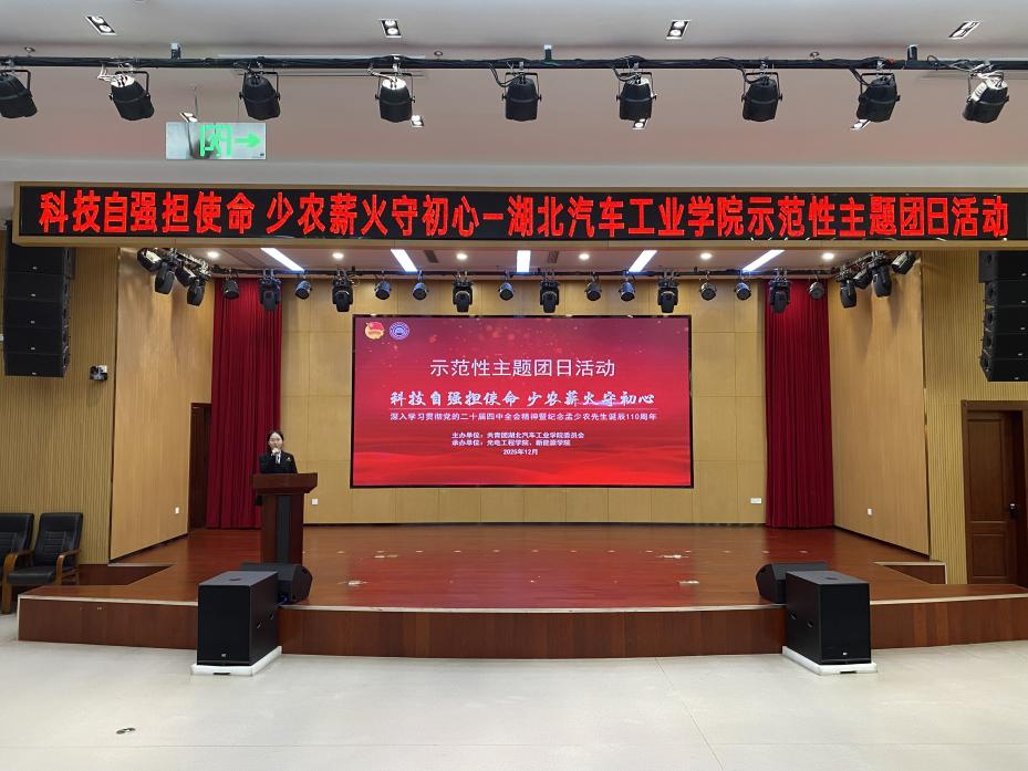 本网讯(文/秦运来、鲍洁)为深入学习贯彻党的二十届四中全会精神,纪念孟少农先生诞辰110周年,引导广大团员青年坚定科技报国志向,12月22日,由校团委主办,光电工程学院、新能源学院承办的“科技自强担使命,少农薪火守初心”示范性主题团日活动,在产教大楼四楼报告厅举行。校党委常委、党政办公室主任王文山,以及团委、光电工程学院与新能源学院相关负责人,各学院团委书记、团支部书记代表近400人共同参加活动。