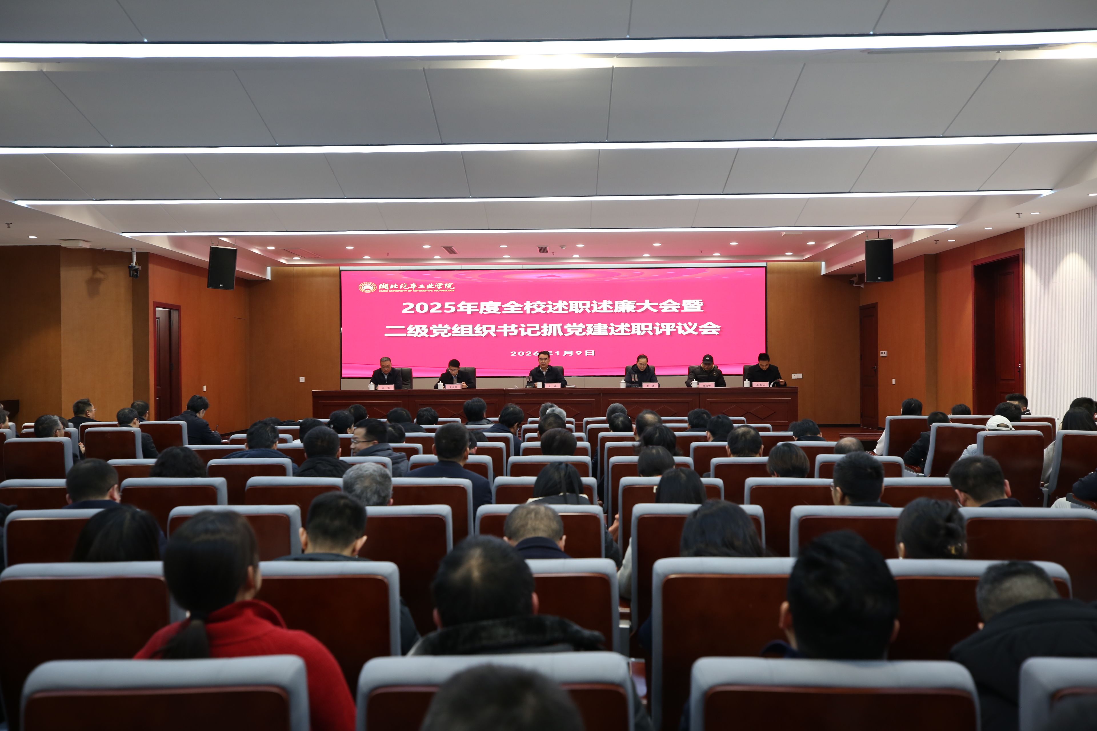 本网讯(文 邓玉洁/图 李一凡)1月9日下午,2024年度全校述职述廉大会暨二级党组织书记抓党建述职评议会在产教大楼三楼报告厅举行。全体校领导、全校中层干部、“两代表一委员”、民主党派负责人、工会委员会委员代表、教职工代表齐聚一堂,总结交流2025年工作经验和亮点,畅谈2026年工作规划。会议由党委副书记、校长李涛主持。