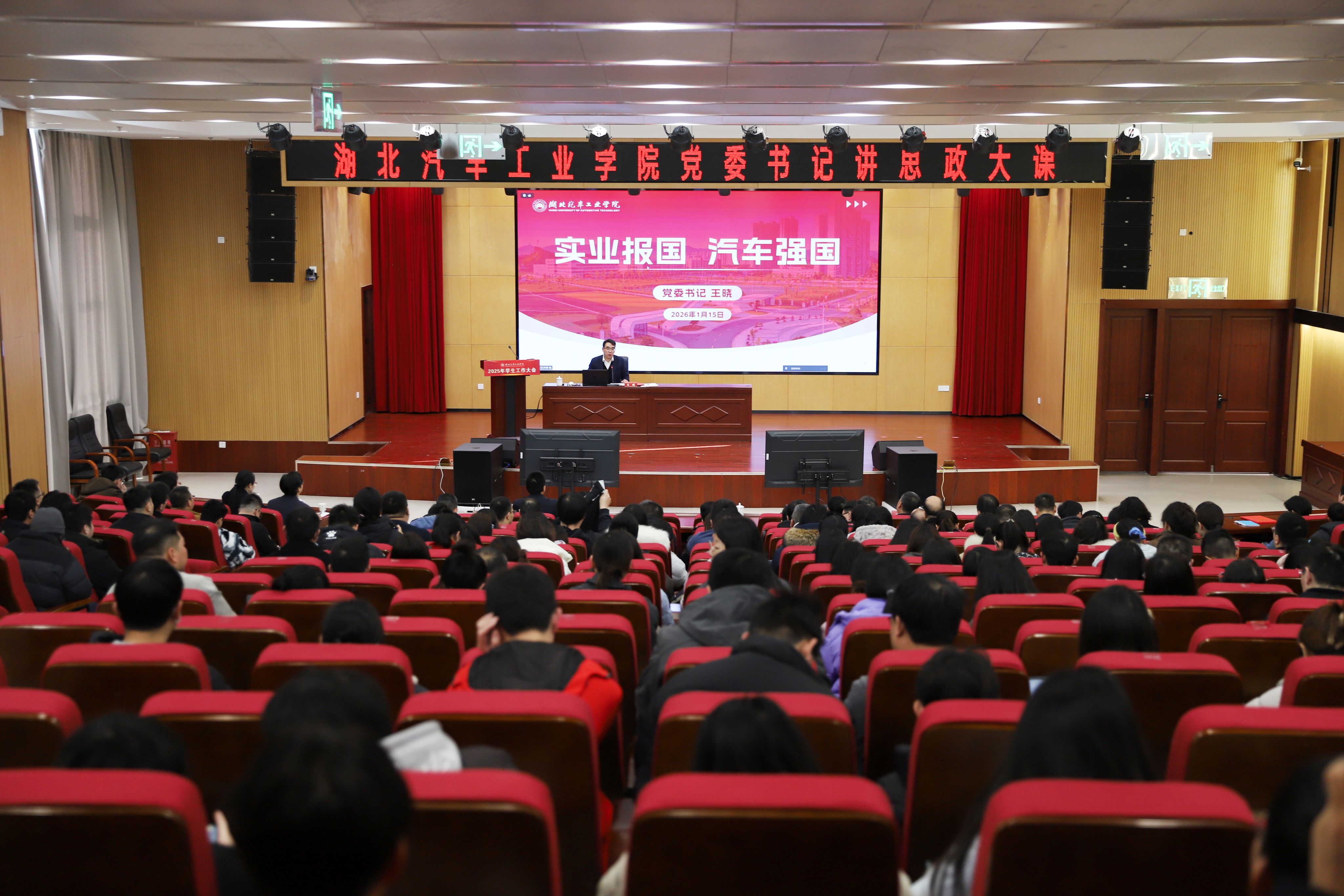 本网讯(文 晏冉/图 邓玉洁)“学校‘大思政课’的底色与亮色应该是什么?怎么与人才培养目标相结合?能否在汽院每个学子心中,埋下一颗信念种子?”1月15日下午,湖北汽车工业学院大思政课在产教大楼四楼报告厅生动开讲。全体在校校领导参加大会。