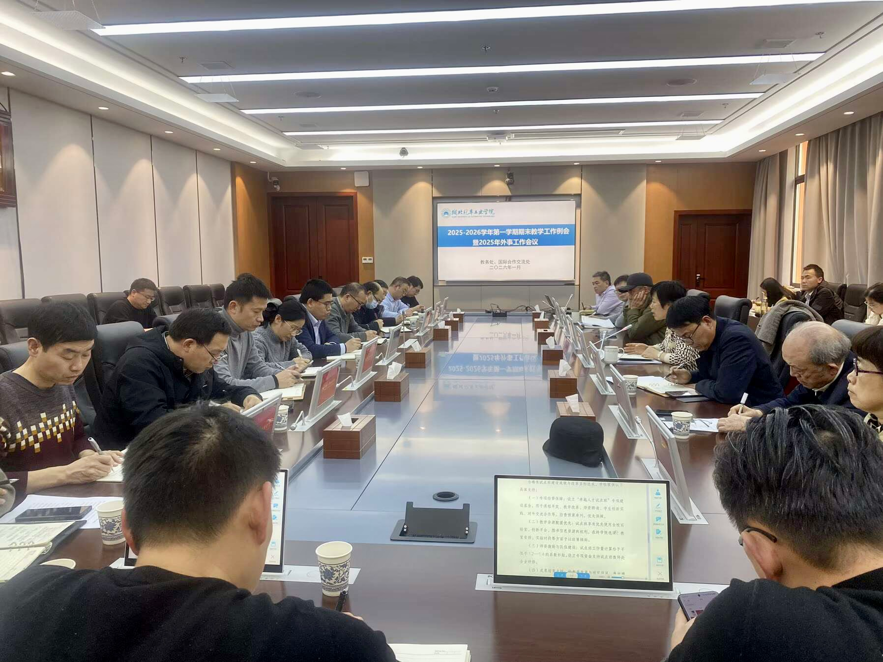 会议通报了本学期教学重点工作开展情况及2025年外事工作情况,解读了《2026版人才培养方案(修订)指导性意见》《本科教学“十五五”规划建议》《卓越人才试点班工作方案》,并对2026年主要工作作了部署安排。