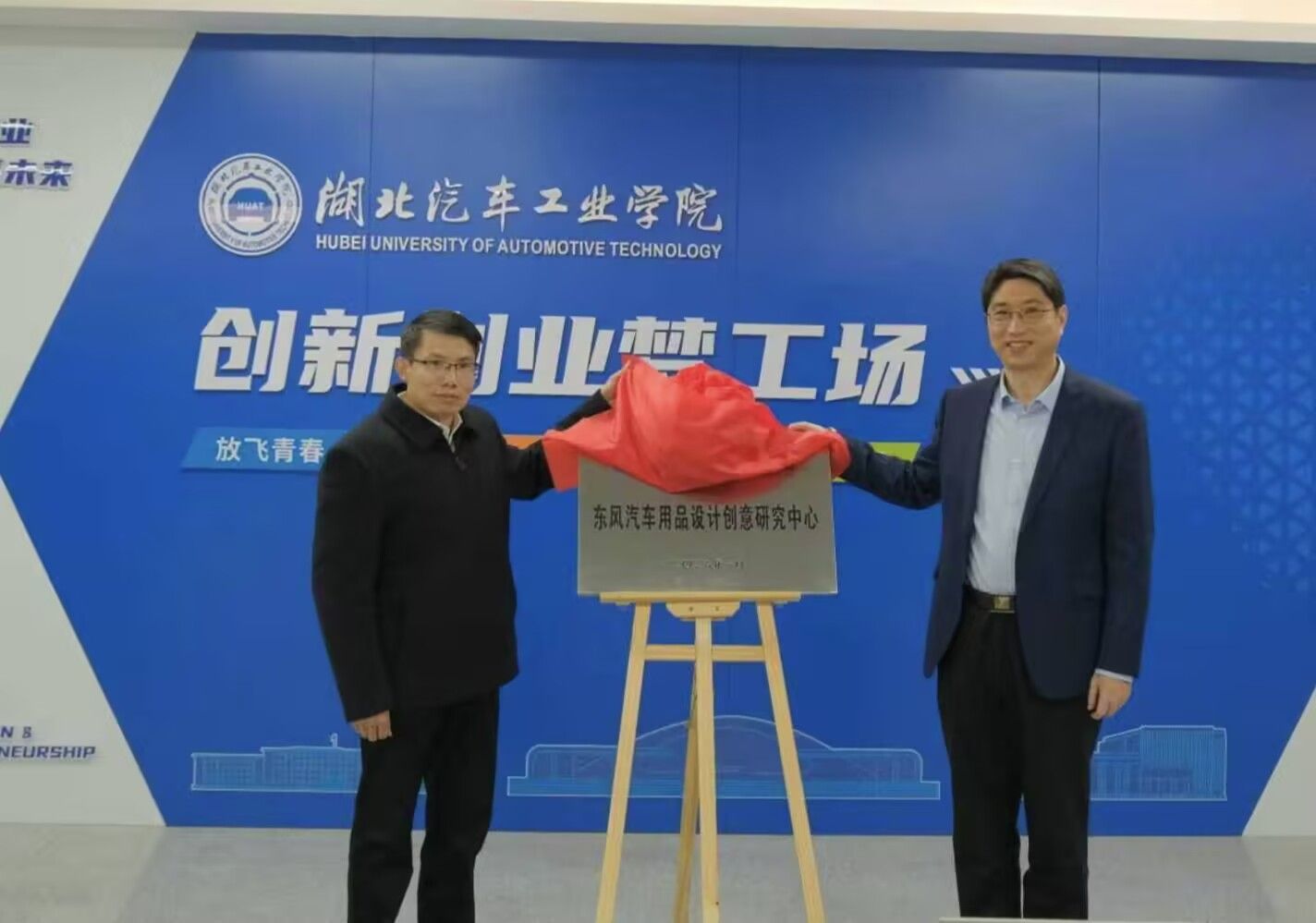 座谈会上,双方围绕重点合作方向深入交流,正式签署合作协议和横向项目委托协议,王生怀与童伟东共同为“东风汽车用品设计创意研究中心”揭牌。随后,童伟东一行参观了我校汽车创意设计梦工坊,实地了解我校围绕汽车文化与设计理论、汽车用品创意设计、汽车造型设计等方面的科研实力与成果。