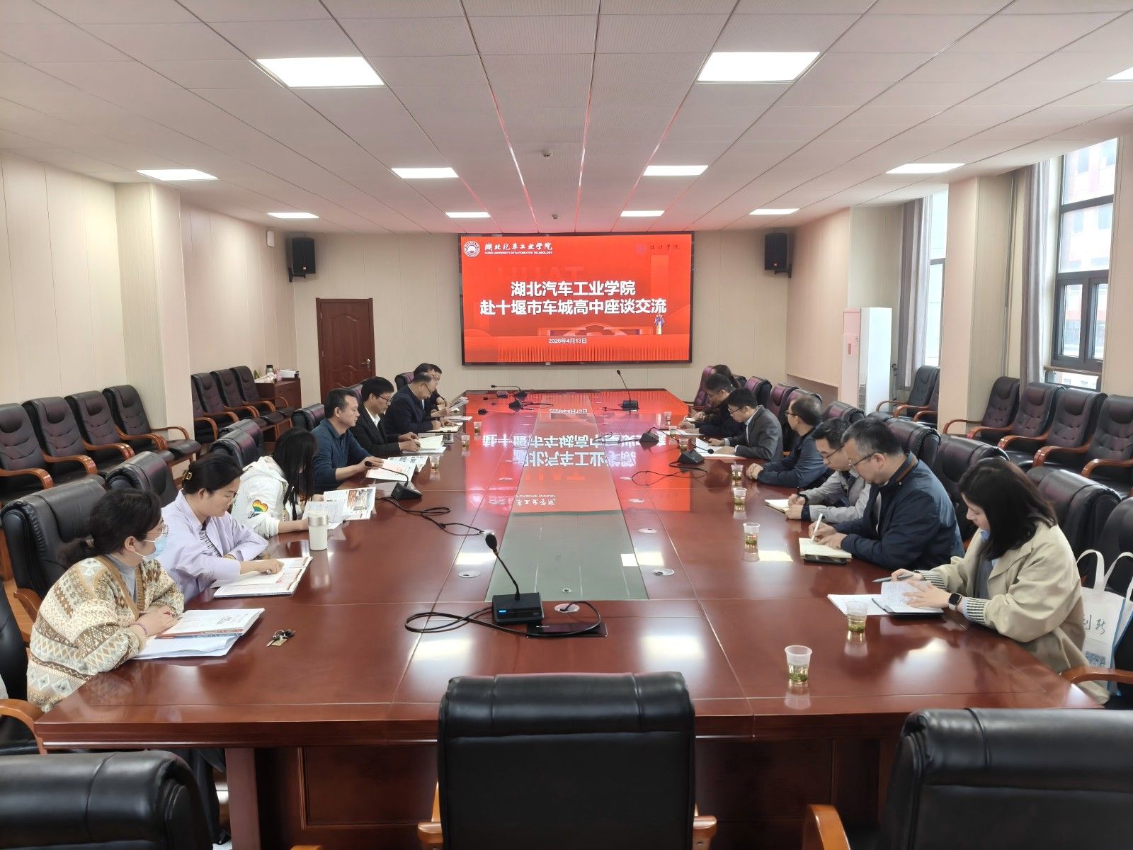 本网讯(文/图 延燕华)为做好与联系高中的长效合作及互动交流,4月13日下午,党委常委、副校长王生怀率设计学院、招生与就业处相关负责人,赴十堰市车城高级中学开展座谈交流。