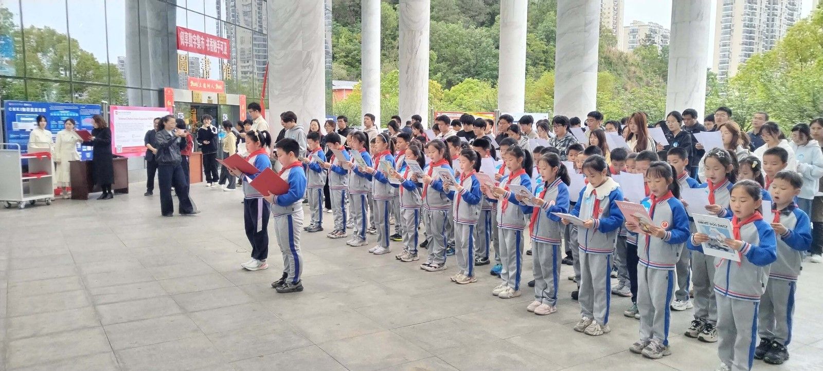在十堰市朗诵艺术家协会会长杨茜领诵下,全场师生齐声诵读经典,琅琅书声回荡会场,将活动氛围推向高潮。