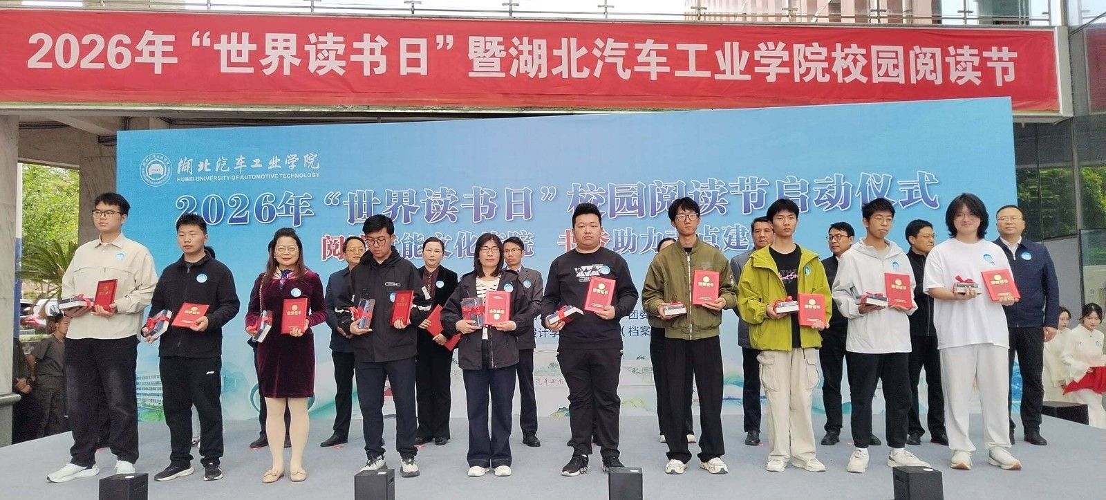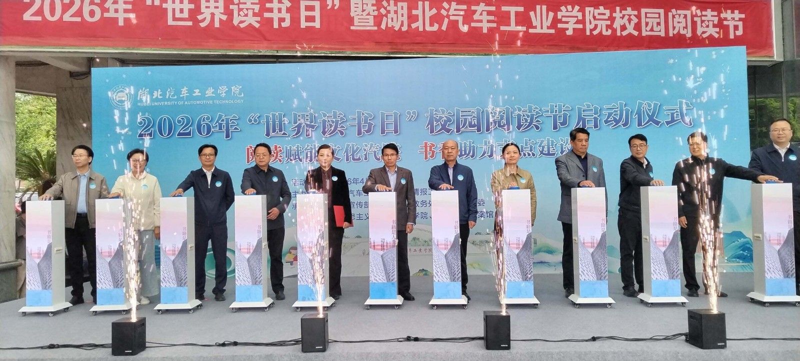本网讯(文冯霞、李晶晶、张弦/图 高阳、徐常燕)春意绵延,书香致远;墨卷至恒,启智润心。4月20日下午,在第31个“世界读书日”即将来临之际,学校以“阅读赋能文化汽院 书香助力支点建设”为主题,在图书馆一楼举行2026年“4·23”校园阅读节启动仪式。党委常委、副校长王生怀,十堰市图书馆馆长彭跃航,十堰市朗诵艺术家协会会长杨茜,东风二〇小学副校长陈冲,及校党委宣传部、教务处、学工部、校团委、工会、图书馆相关部门领导、师生代表齐聚现场,共赴春日书香盛宴。