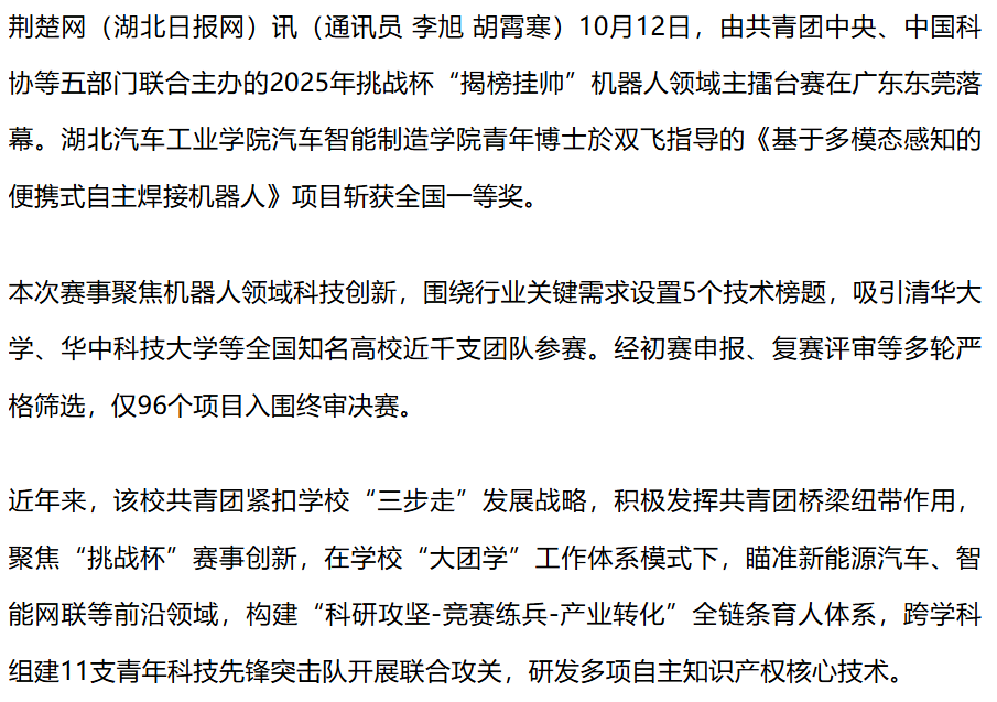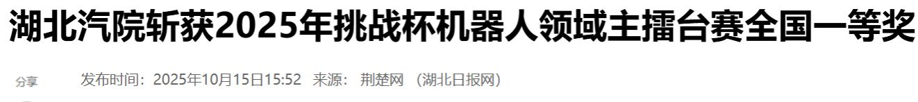 【荆楚网】湖北汽院斩获2025年挑战杯机器人领域主擂台赛全国一等奖