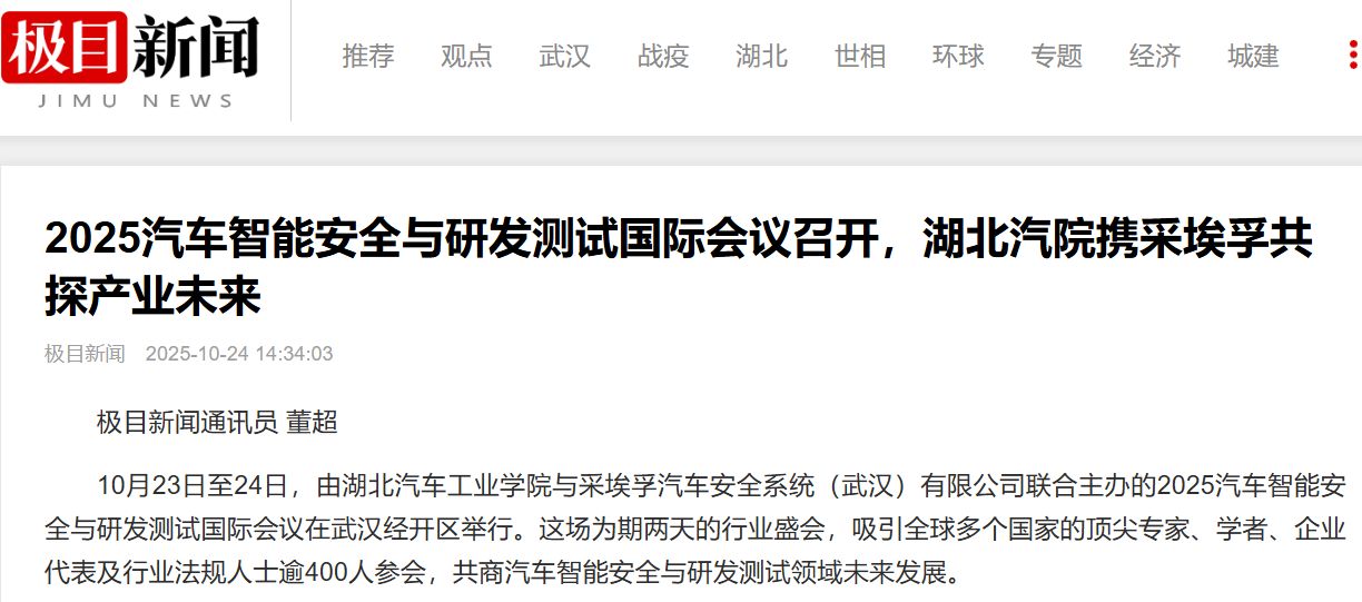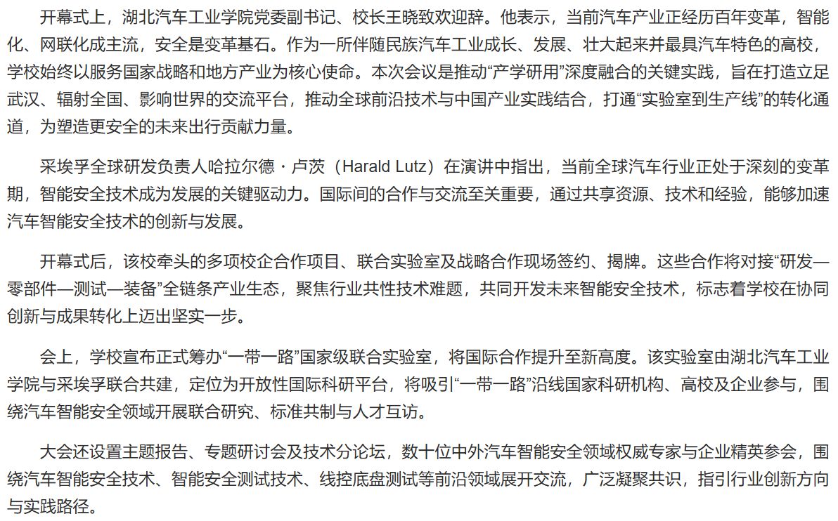 【极目新闻】2025汽车智能安全与研发测试国际会议召开,湖北汽院携采埃孚共探产业未来