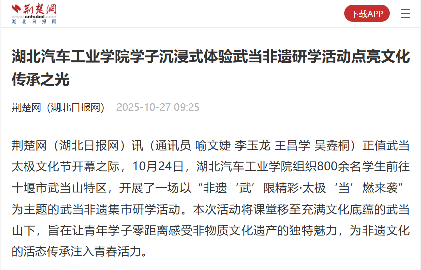 | · | 【荆楚网】湖北汽车工业学院“小青... | 10-28 |