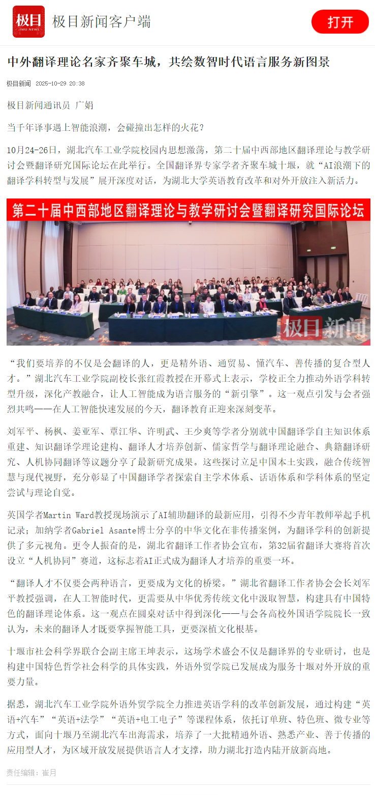 | · | 【极目新闻】中外翻译理论名家齐聚... | 10-30 |