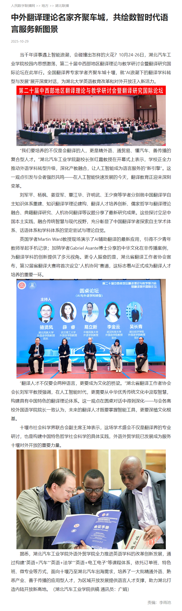 | · | 【荆楚网】中外翻译理论名家齐聚车... | 10-30 |