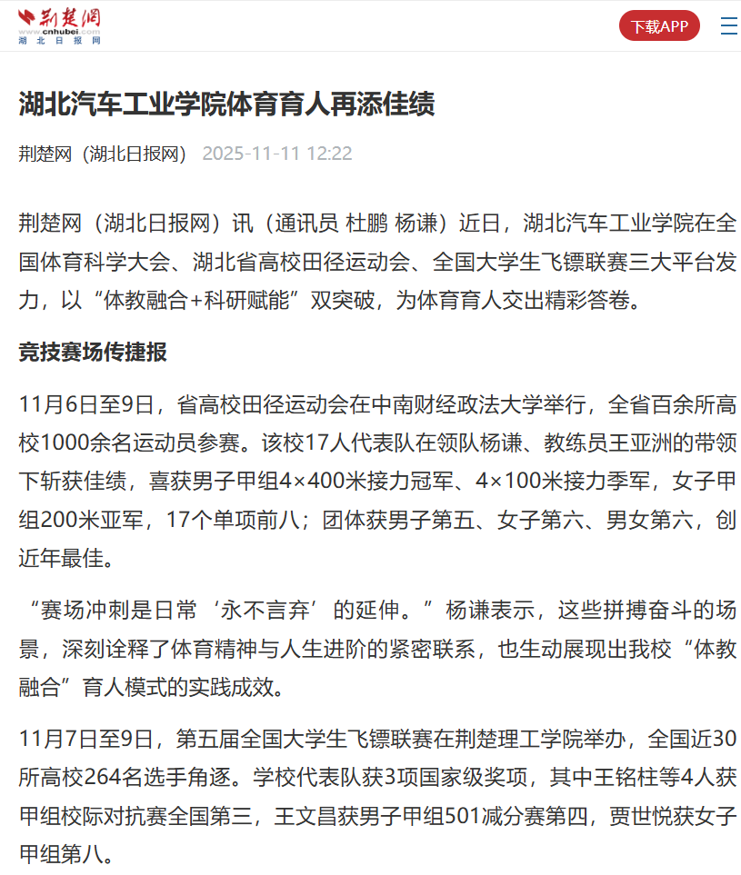 【荆楚网】湖北汽车工业学院体育育人再添佳绩
