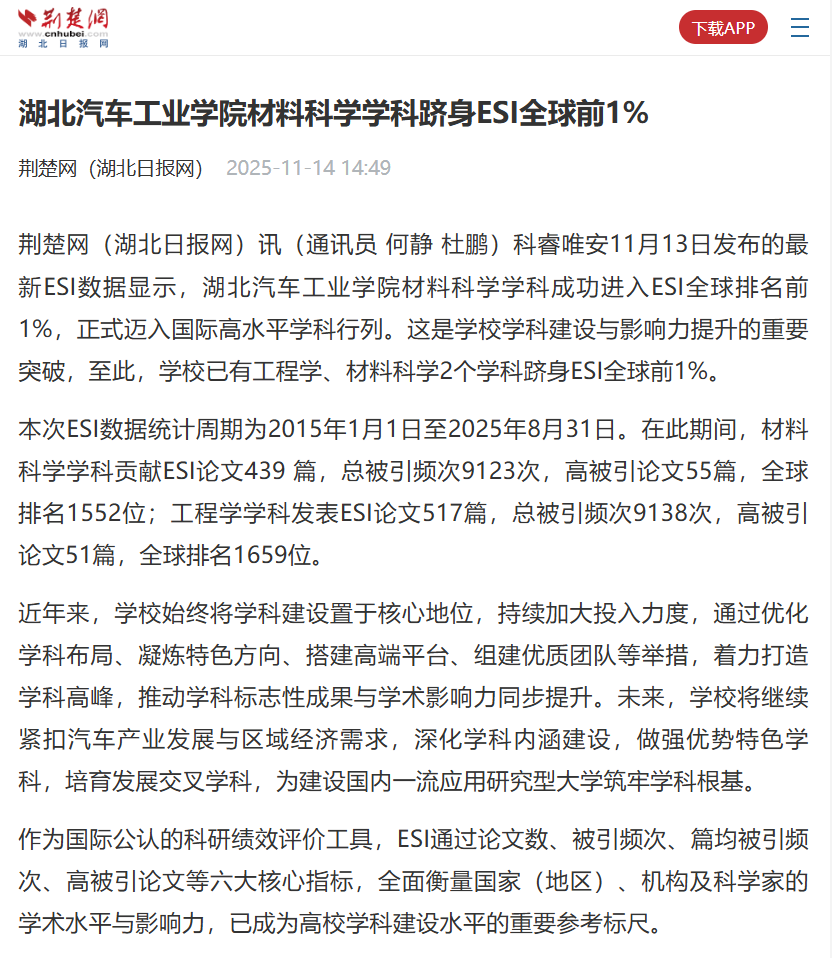 | · | 【荆楚网】湖北汽车工业学院材料科... | 11-14 |