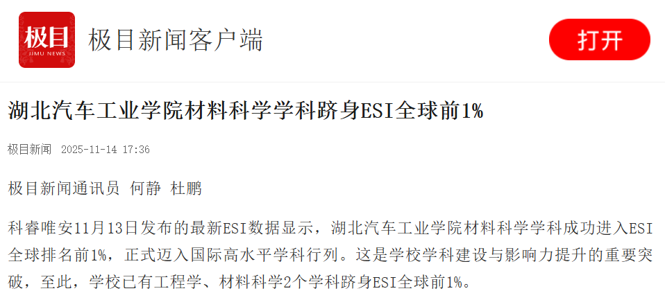 | · | 【极目新闻】湖北汽车工业学院材料... | 11-17 |