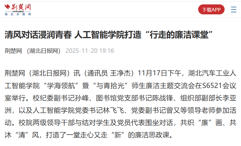| · | 【荆楚网】清风对话浸润青春 人工智... | 11-24 |