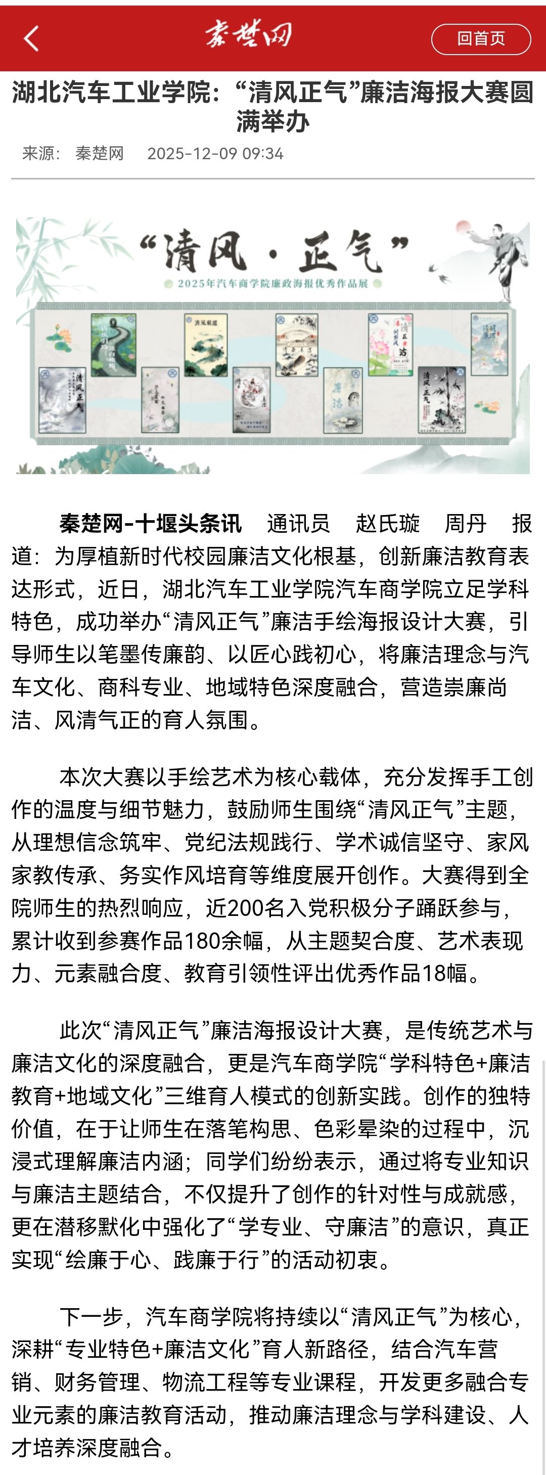 【秦楚网】湖北汽车工业学院:“清风正气”廉洁海报大赛圆满举办