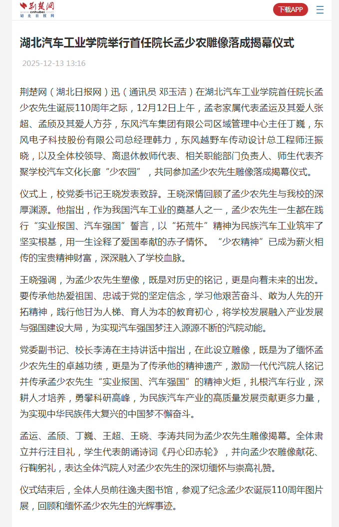 | · | 【秦楚网】湖北汽院举办纪念孟少农... | 12-14 |