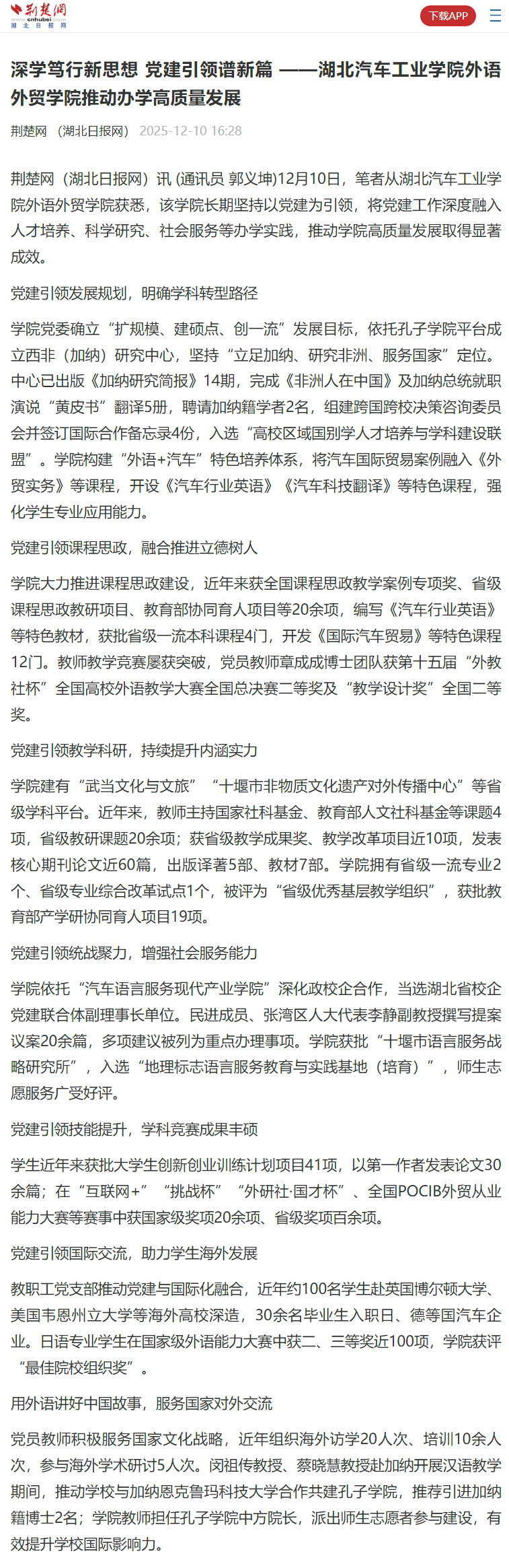 | · | 【荆楚网】“党建+”引领产教深度融... | 12-12 |