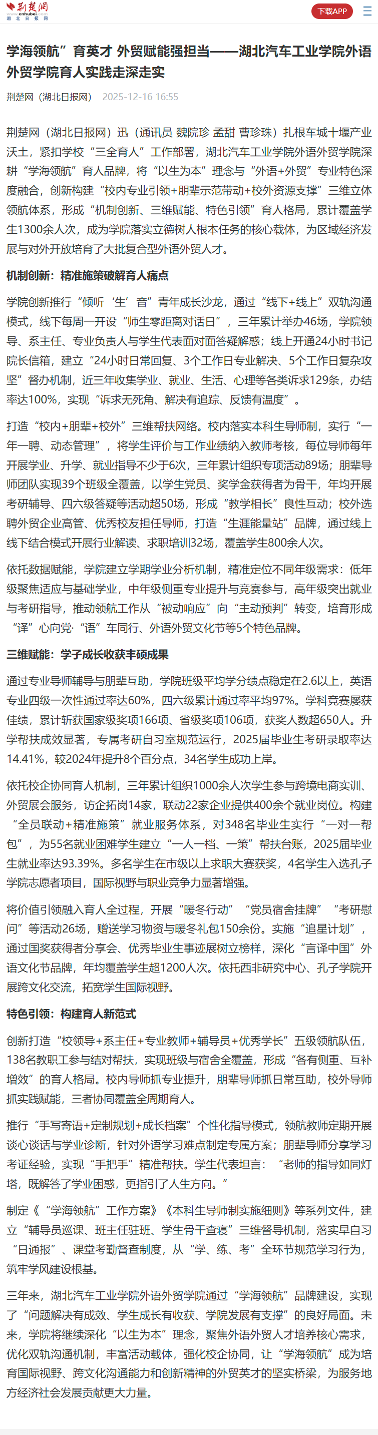 | · | 【荆楚网】学海领航”育英才 外贸赋... | 12-19 |