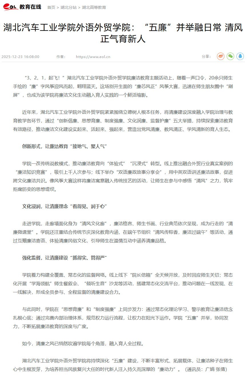| · | 【荆楚网】湖北汽车工业学院外语外... | 12-25 |