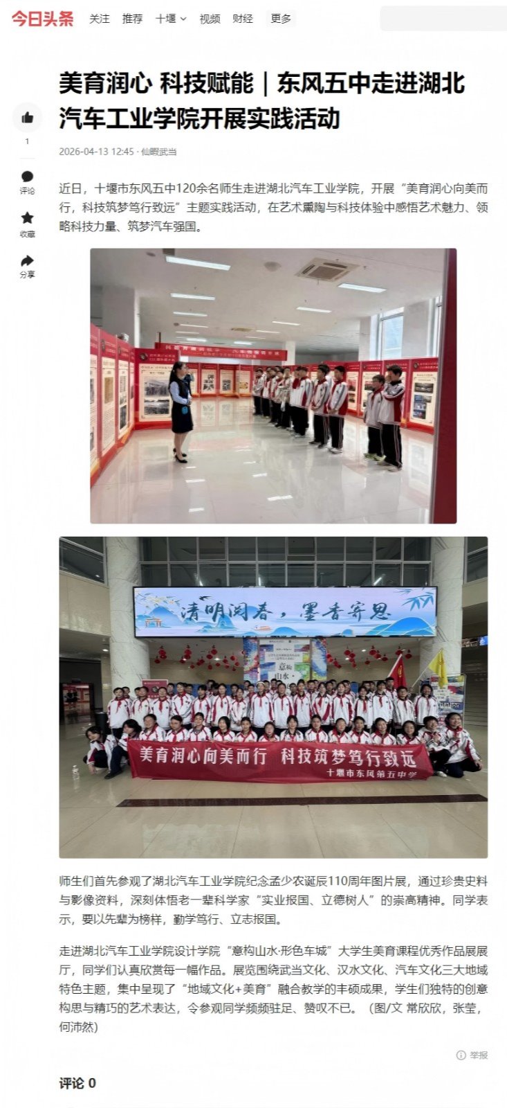 【今日头条】美育润心 科技赋能|东风五中走进湖北汽车工业学院开展实践活动