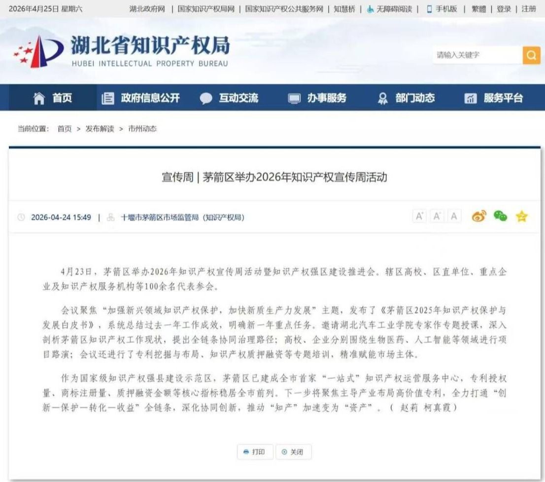 | · | 【湖北省知识产权局】茅箭区举办202... | 04-27 |