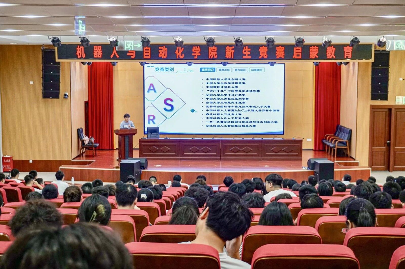 本网讯(文于 晶/图 新媒体)9月14日,机器人与自动化学院举办新生竞赛启蒙教育活动,2025级全体新生参加。活动由学院党委副书记程俊峰主持。