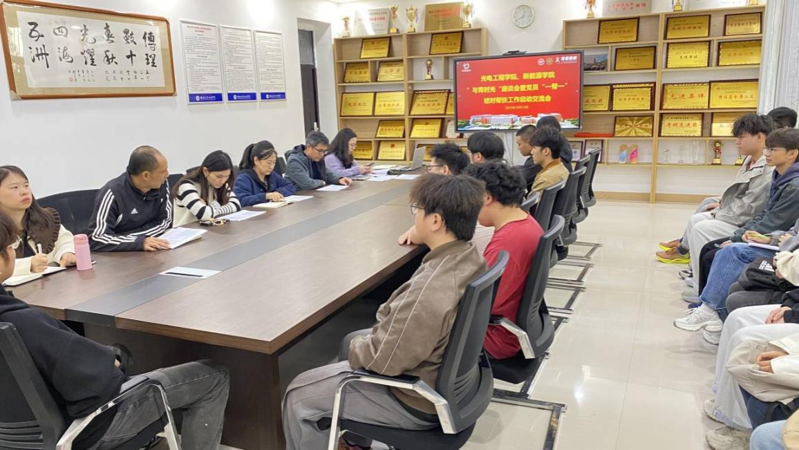 本网讯(文/图 秦运来)为进一步加强学院学风建设,营造良好的学风、院风,10月15日,光电工程学院、新能源学院在1126会议室开展“与青拾光”师生座谈会暨党员“一帮一”签约活动。学院党委书记张默、副院长张传坤、副院长马亚楠、全体辅导员、帮扶党员及被帮扶对象参加了此次活动,活动由学院党委副书记张朋刚主持。