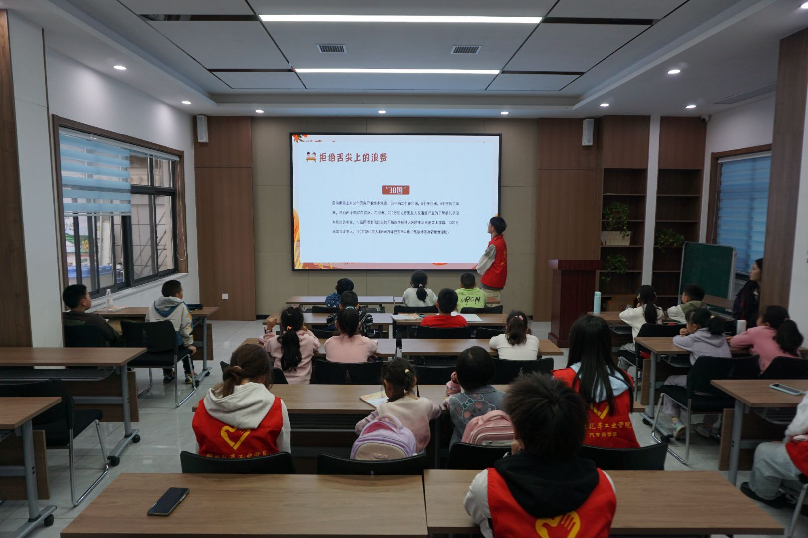 活动伊始,志联分会实践部部长李青松为孩子们带来一场生动的节约粮食主题宣讲。在互动环节中,志愿者们精心设计了“一粒米的旅程”情景游戏和粮食分类竞赛,配合图片与视频,直观展示粮食从田间到餐桌的全过程,让孩子们在参与中理解粮食的珍贵。现场气氛活跃,孩子们踊跃参与游戏与竞赛,并主动在“节约倡议墙”上张贴亲手写下的承诺便利签,纷纷表示将从自身做起,践行“光盘行动”,珍惜每一粒粮食。活动尾声,志愿者们还协助孩子们完成课后作业,并一同开展轻松有趣的游戏互动。
