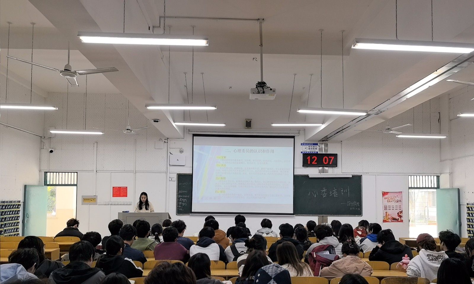 为加强学生心理健康教育工作,提升心理委员和寝室安全员的专业素养,10月29日中午,设计学院在2102教室开展心理健康知识专题培训会,学院全体心理委员及寝室安全员参与学习。本次培训由设计学院辅导员延燕华主讲,学院分团委心理部主席胡星辰主持。