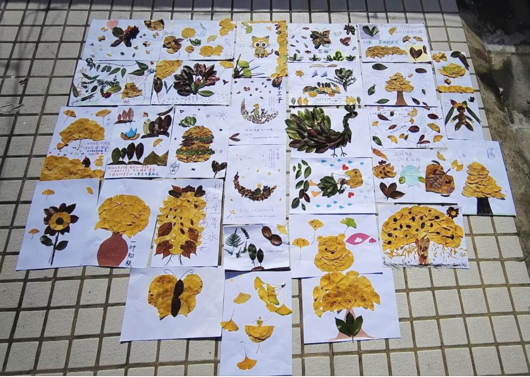 落叶艺术创作环节成为活动的亮点。同学们充分发挥创意,将落叶转化为画作、立体雕塑、拼贴画等各类艺术品;精心挑选喜爱的秋叶制作书签,并在书签上写下自己的感悟或祝福语;还利用拓染纸、锤子、颜料等工具,将树叶制作成拓染作品。同学们在动手实践中感受自然之美与创作的乐趣。