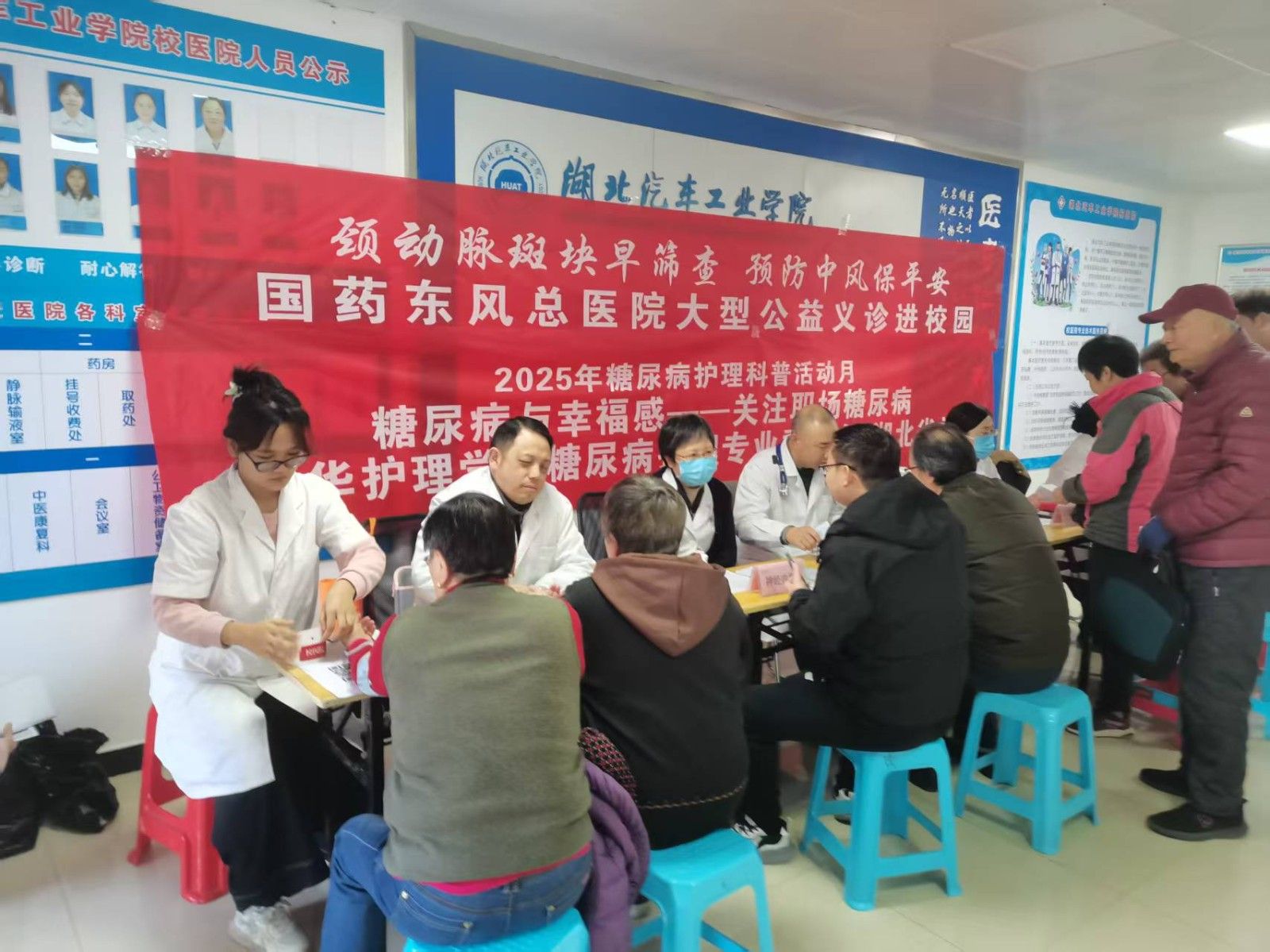 本网讯(文/图 杨柳)为切实守护教职工(含离退休人员)身心健康,11 月 13 日上午,我校工会牵头国药东风总医院在校医院开展“颈动脉斑块筛查暨多学科义诊进校园” 大型公益义诊活动。来自国药东风总医院中医科、心血管内科、内分泌科、神经内科的专家团队亲临现场,为全校教职工提供免费医疗咨询与诊疗服务,把优质医疗资源送到教师“家门口”。