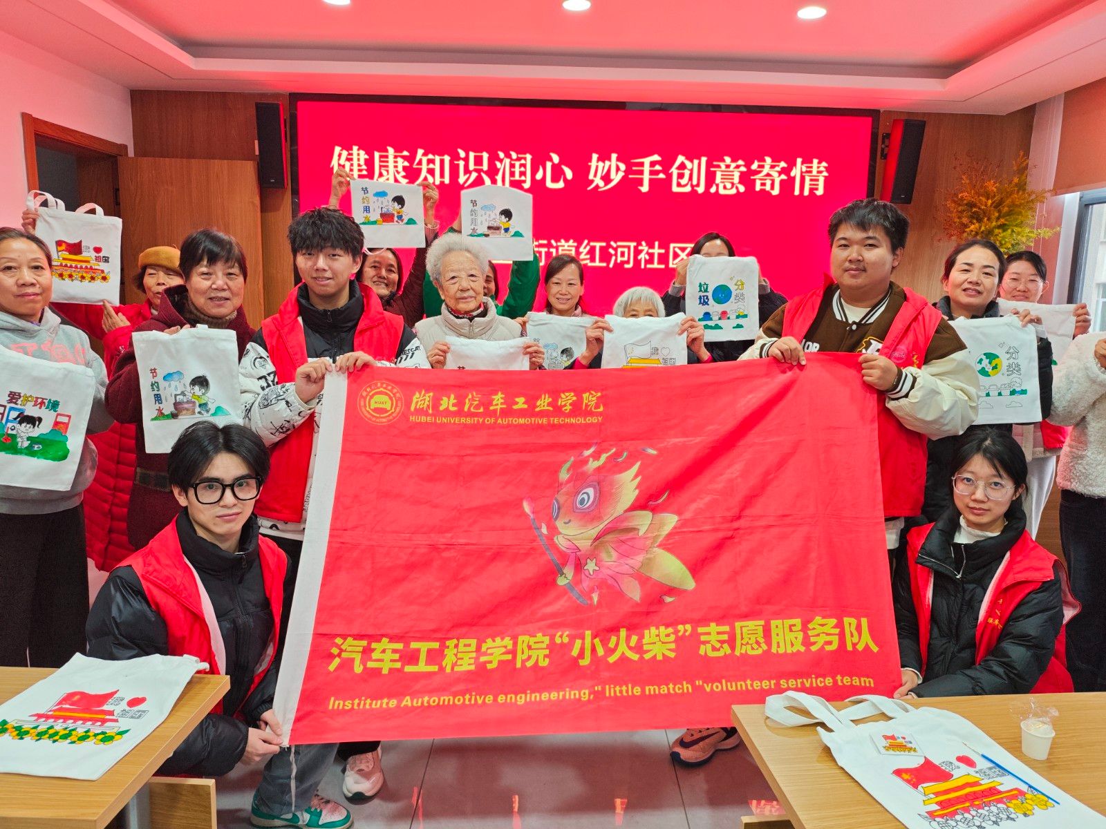 本网讯(文 徐勇涛/图 周逸杰)11月17日下午,汽车工程学院小火柴志愿服务队走进红卫街道红河社区,以“健康知识润心,妙手创意寄情”为主题开展志愿活动,将健康宣讲与创意手作融入社区日常,用青春服务传递暖意。
