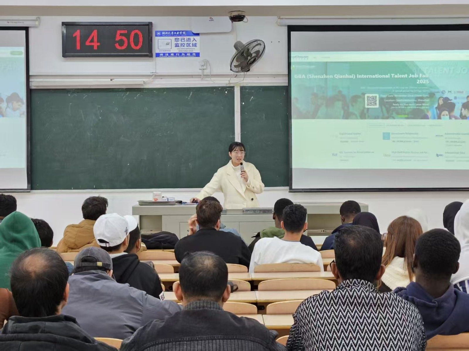 本网讯(文/图 张婷婷)为帮助来华留学生把握就业机遇,明晰职业发展方向,11月21日,国际教育学院在5202教室举办了来华留学生就业动员大会,2026届应届毕业留学生50余人参会。