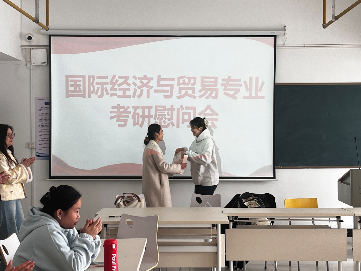 此次考研慰问活动,不仅为备考学子送去了物质上的支持,更给予了精神上的慰藉与鼓励,充分体现了国际经济与贸易专业对学生成长的重视与关怀。据悉,该专业还将持续关注考研学子的备考状态,为其提供后续的答疑与支持服务,助力学子们圆梦研途。(审稿 翟全伟)