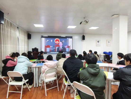 活动在庄严的国歌声中正式开始。刘青以“宪法与青年成长”为主题,系统介绍了国家宪法日的由来与重要意义,阐述宪法作为国家根本大法在保障公民权利、规范社会秩序中的核心作用,引导学生将宪法精神融入日常学习与生活。随后,冯洁茹合校园实际,从行为规范、权利保障、社会责任等方面,通过生动案例解析宪法条文,推动宪法知识从理论向实践转化,让法治观念可感可及。现场还组织观看了宪法宣传短片,以影像形式展现法治力量。