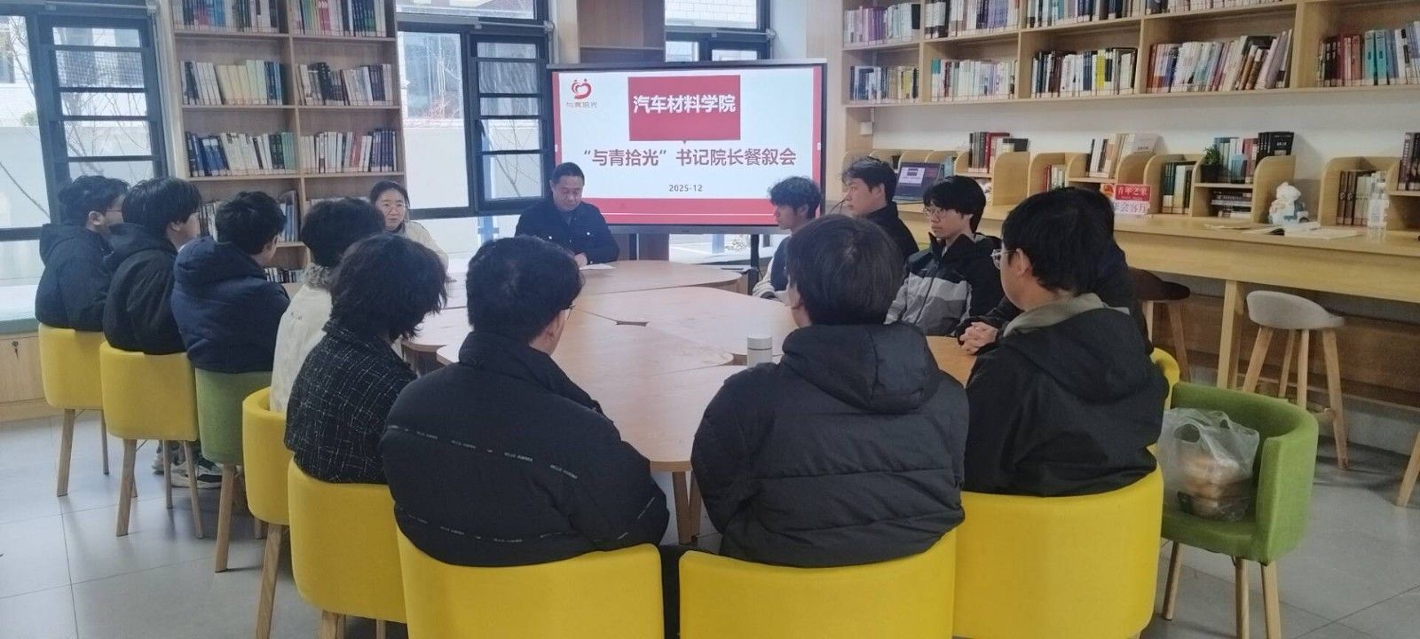 本网讯(文/图 骆无思)为精准对接大三年级学生成长需求,破解实习实践、学业规划、考研备考等核心困惑,12月19日上午,汽车材料学院在北校区一站式学生社区组织召开“与青拾光”书记院长餐叙会。学院党委副书记何君、辅导员骆无思及各专业学生代表齐聚一堂,围绕同学们学习生活中各类困惑展开深度交流,为学生成长搭建高效沟通的桥梁。