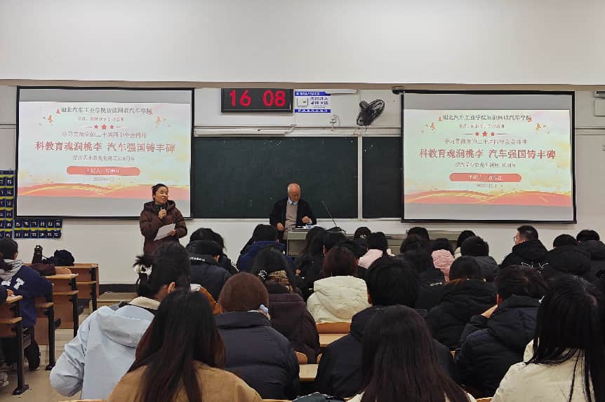 本网讯(文余婧靓/图 马成涛)为纪念孟少农先生诞辰110周年,12月22日下午,湖北汽车工业学院智能网联汽车学院举办“科教育魂润桃李 汽车强国铸丰碑”主题党课。本次党课由邱春正老师主讲,学院党委副书记向平主持,学院党员及入党积极分子参加学习。