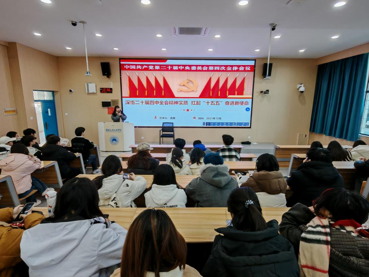 本网讯(文/肖苏畅、孟甜)为深入学习贯彻党的二十届四中全会精神,强化青年学生的思想政治引领,锻造政治坚定、能力突出的学生骨干队伍,外语外贸学院于12月25日举办党的二十届四中全会精神专题宣讲会暨“青马工程”培训会活动。学院团委书记孟甜、全体团支部书记、“青马工程”学员参加了本次活动。