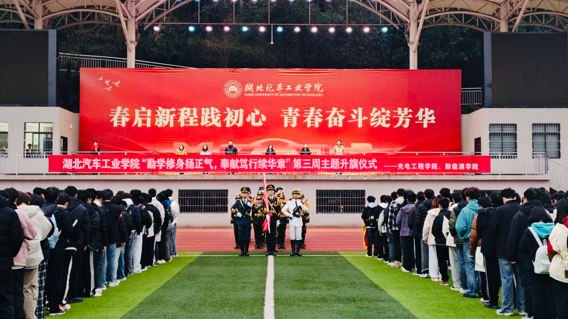 本次主题升旗仪式将爱国主义教育、学风建设、品德修养与志愿服务精神有机融合。不仅强化了同学们的集体荣誉感和责任感,更清晰地指明了将“勤学修身”内化为成长阶梯、将“奉献笃行”外化为价值追求的行动方向。激励大家把抽象的爱国情怀转化为日常学习与奉献的具体行动,为书写个人与时代发展新篇章奠定思想基础。仪式结束后,同学们按计划有序开展了阳光健康跑。(审稿 张默)