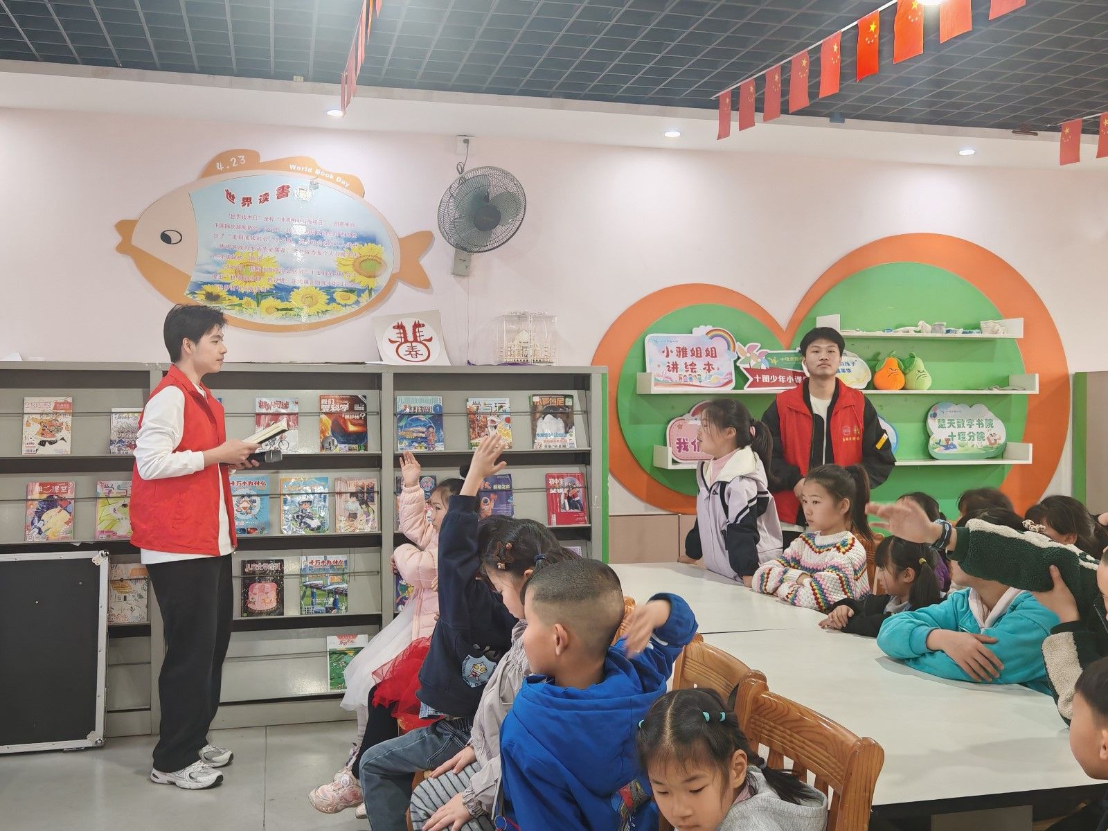 3月29日,紧扣世界水日、中国水周宣传节点,“书海护清流,绿意满书香”主题活动顺利开展,为整个系列活动画上了圆满的句号。本次活动聚焦少儿绘本专区开展精准服务,志愿者们对品类繁多的少儿绘本进行分类梳理、排序归位,打造出整洁有序、便于小朋友取阅的阅读空间。