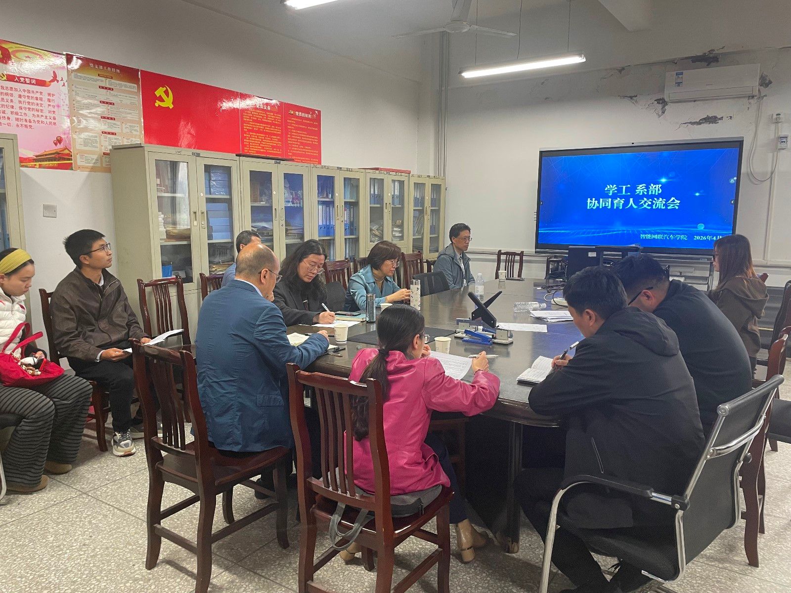 本网讯(文/杨耀钧)为落实立德树人根本任务,打破学工与系部育人壁垒,4月13日下午,智能网联汽车学院在三楼会议室、S6507会议室同步召开系部、学工协同育人交流会。学院院长陈宇峰、学院党委书记曾小岩、副书记向平分别带队赴计算机工程系、智能工程系开展交流,全体辅导员、系部全体教师参会。