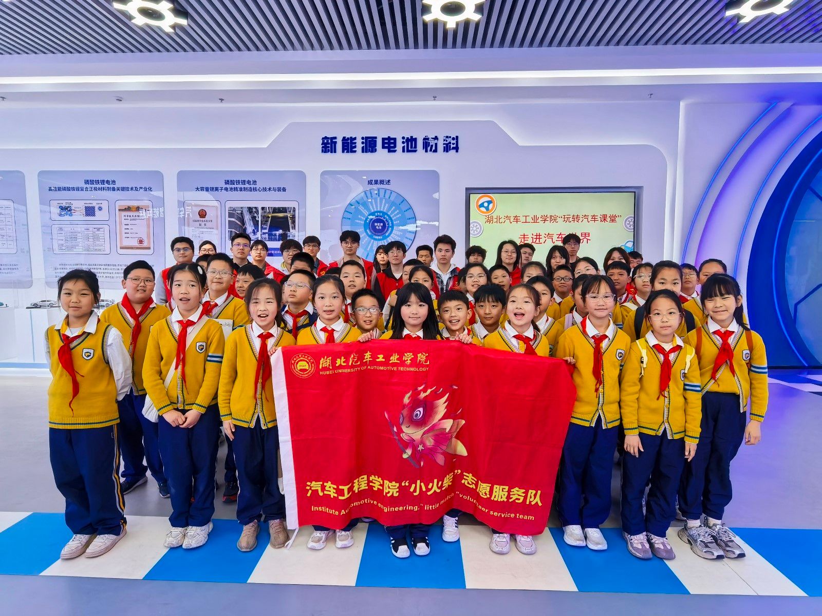 本网讯(文 迪力亚尔/图 徐勇涛、周逸杰)4月21日上午,十堰市外国语小学30名学生走进我校科创展厅,在我校校团委“玩转汽车课堂”公益项目团队、汽车工程学院“小火柴”志愿服务队与十堰市图书馆的联合组织下,开启了一场趣味盎然的汽车科创实践之旅。刚进展厅,孩子们便被形态各异的汽车模型吸引,有学生迫不及待举手提问:“这个汽车模型和我们平时坐的车,构造一样吗?”充满好奇的追问,瞬间拉开了活动的序幕。