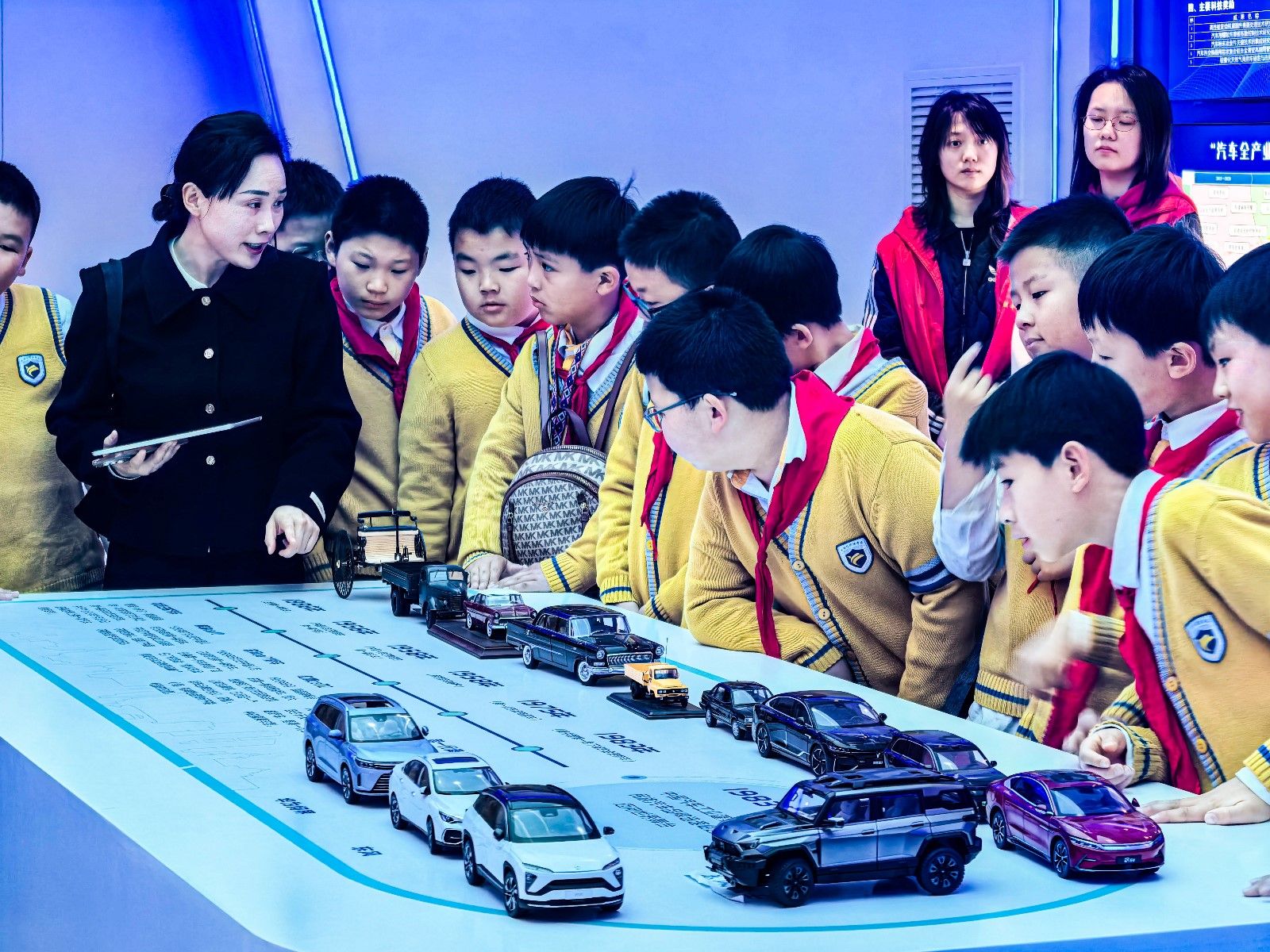科普讲解环节,志愿者化身科普讲师,结合青少年认知特点,借助科普绘本、汽车实物模型,生动讲解汽车构造、行业发展及新能源汽车核心知识、道路交通安全常识。现场设置趣味问答环节,充分调动30名学生的参与热情,互动踊跃、氛围浓厚。